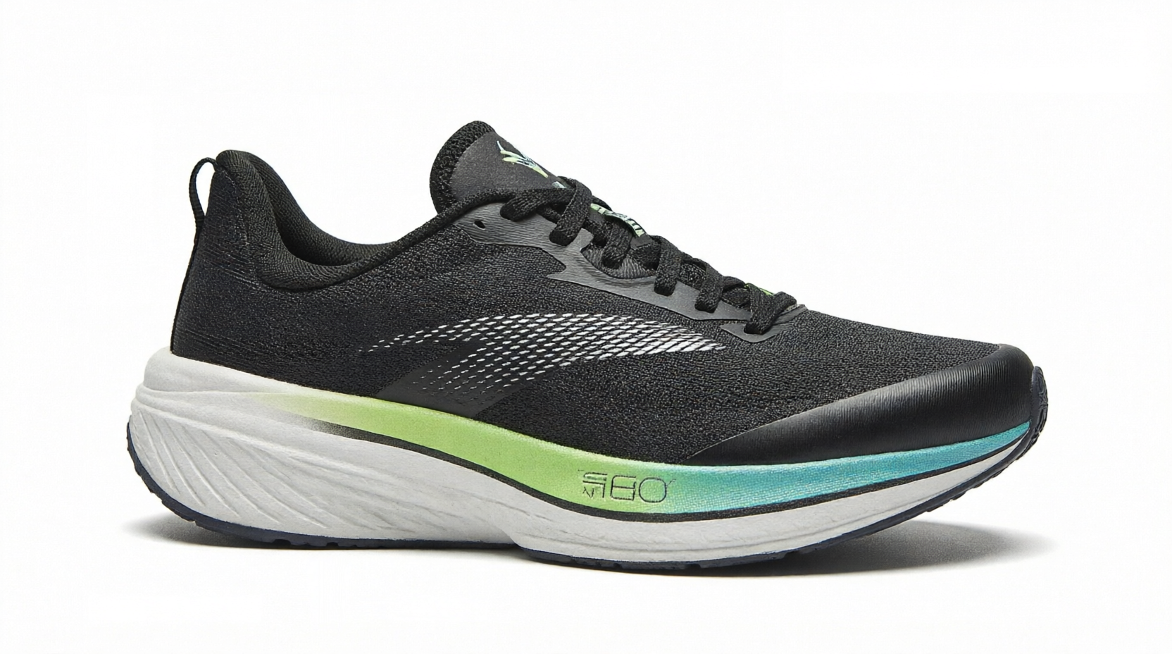 Средняя подошва из азотной пены NITRO 80 предлагает идеальный баланс: обеспечивает эффективную амортизацию, поглощает ударные нагрузки, и дает достаточный возврат энергии для стабильного темпа на всей дистанции.