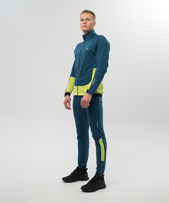 - Передняя часть выполнена из непродуваемого и непромокаемого Softshell, а задняя — из более тонкого и эластичного влаговыводящего полотна, что обеспечивает комфорт и свободу движений