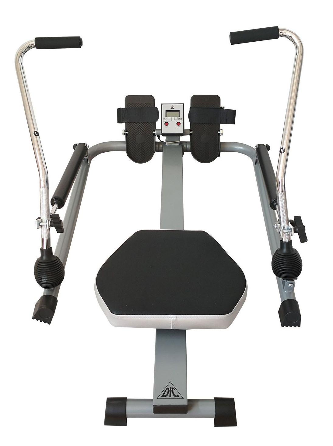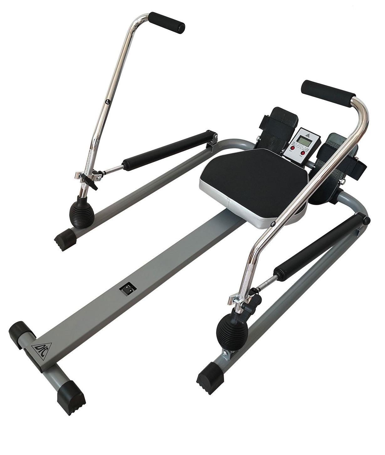 Тренажер гребной DFC. Гребля является очень эффективным комплексом упражнений, потому что в ходе его выполнения одновременно тренируются все основные группы мышц как верхней, так и нижней частей тела, а также сердечно-сосудистая система. Предназначен для домашнего использования.